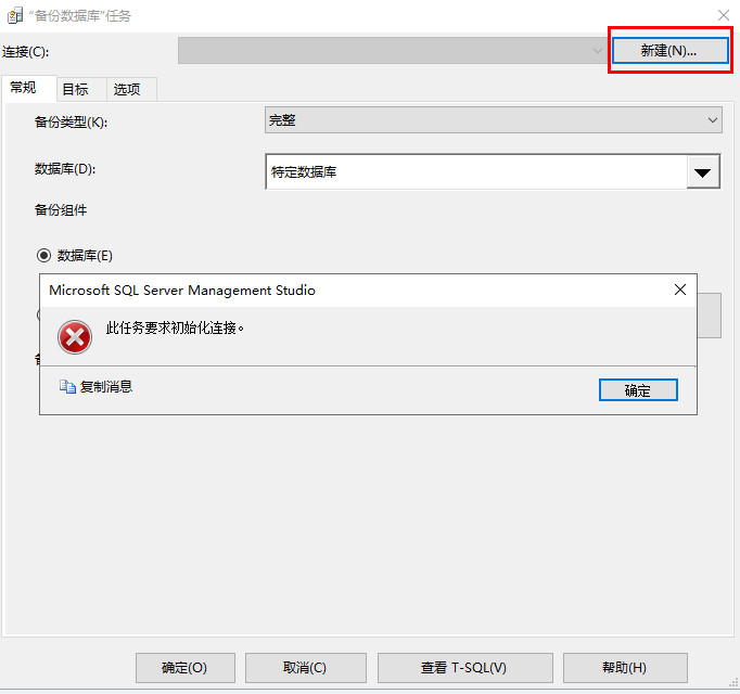 sql server2019---维护计划--数据库备份 出现:此任务要求初始化连接,怎么解决?