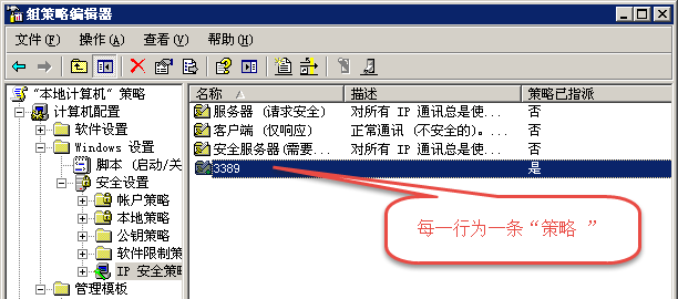 确定后,右击“3389过滤”,选择“指派”,不用重启机器即可生效。