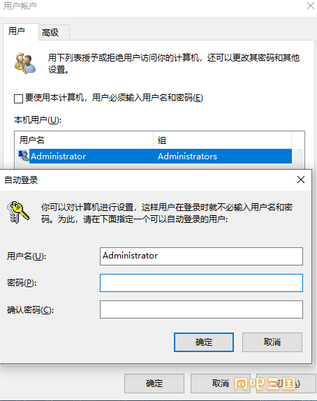 2.运行netplwiz,点击需要自动登录的账号,取消"要使用本计算机,用户必须输入用户名和密码"勾选,点击应用会弹出账号和密码登录页面,再输入账号和密码点击确认。后续服务器重启就不需要在手动输入密码。