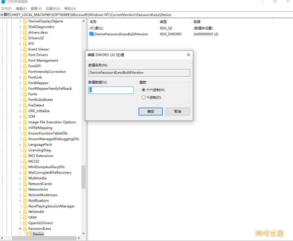 1.服务器运行regedit,打开注册表,然后打开计算机\HKEY_LOCAL_MACHINE\SOFTWARE\Microsoft\Windows NT\CurrentVersion\PasswordLess\Device,双击【DevicePasswordLessBuildVersion】,把数值改为【0】,确定。